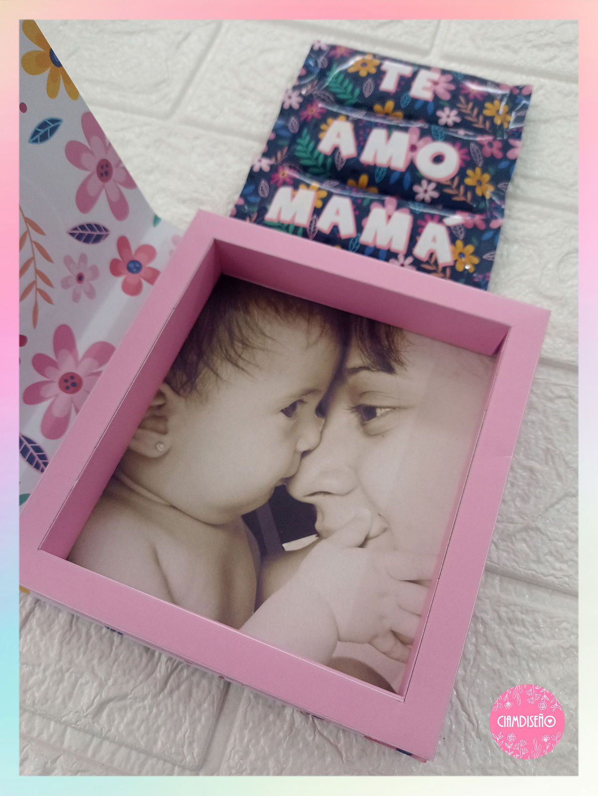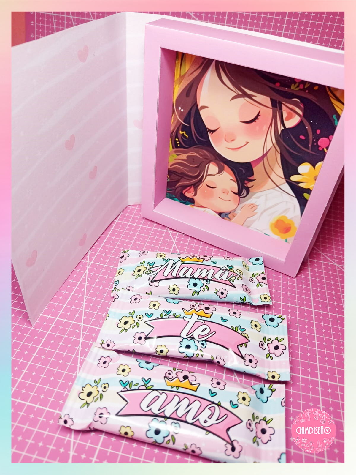 2 diseños. Cada portarretrato chocolate ocupa 4 hojas A4.
