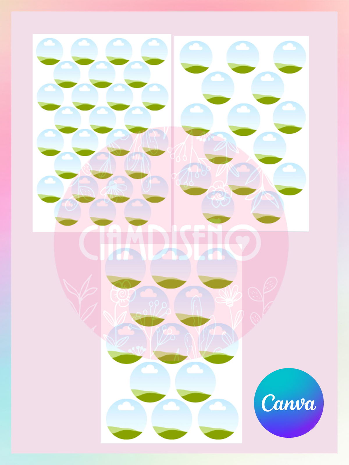 Contiene 1 hoja A4 circulos de 4cm, 1 hoja A4 circulos de 5cm y 1 hoja A4 circulos 6cm.